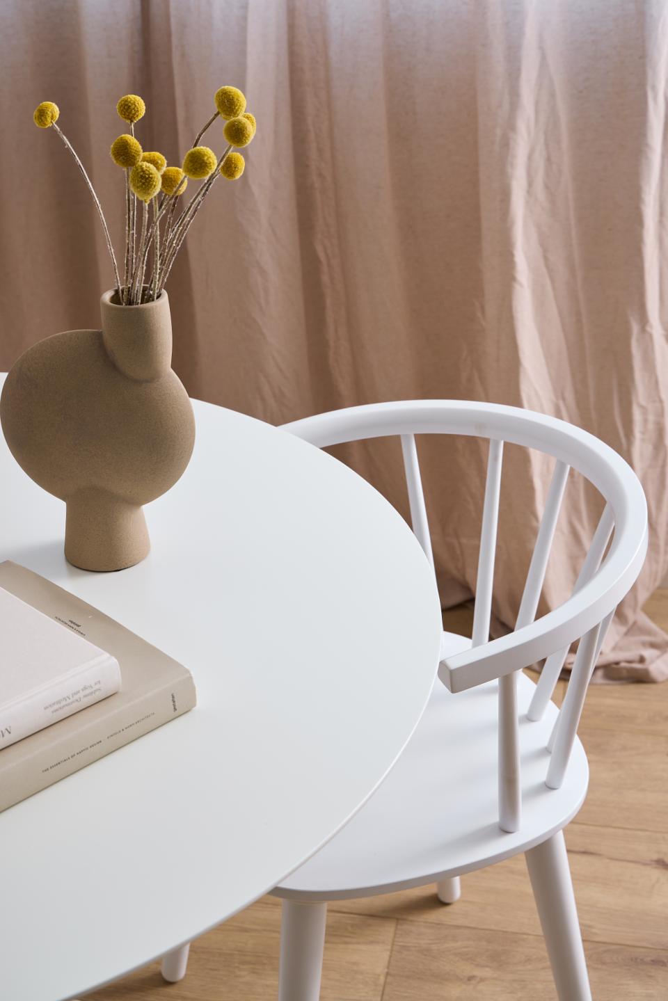 • Stühle: Rubberwood (Kautschukholz), weiss lackiert