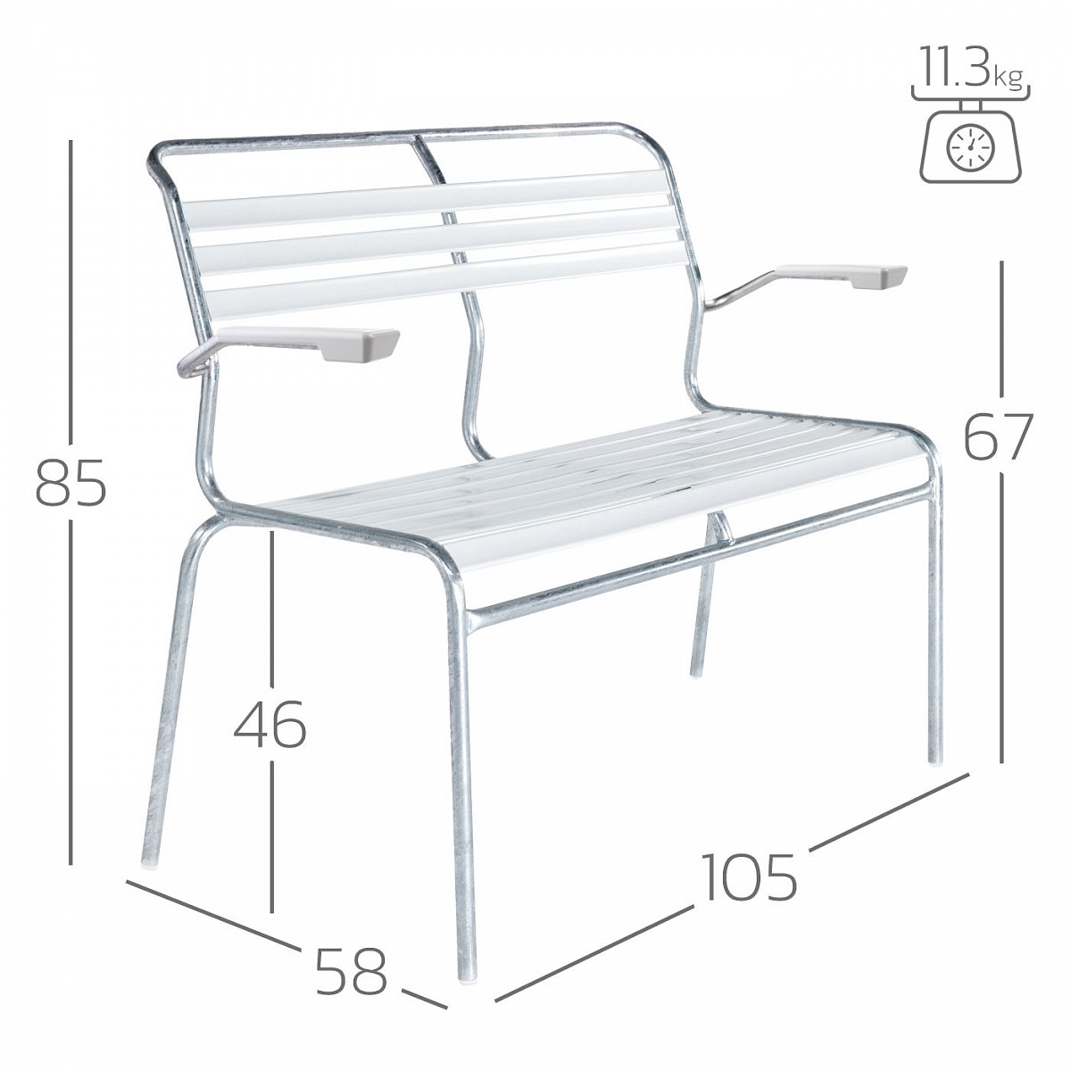 Säntis Lättli Bank 2-er Kunststoff mit Armlehne Gestell farbig von Schaffner